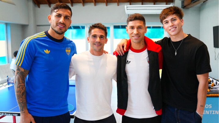 BUENOS AIRES, Argentina (17 de abril de 2026) - En el marco de la antesala del Superclásico River-Boca, Mariano González y Massi Pomponio, protagonistas de O11CE: Nueva generación, se reunieron con Gonzalo Montiel y Leandro Paredes referentes de River Plate y Boca Juniors, en el predio de la AFA, Lionel Andrés Messi.